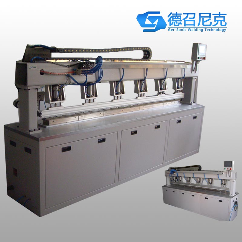 超聲波金屬滾焊設(shè)備是將超聲波滾焊系統(tǒng)安裝在設(shè)備龍門架上,滾焊系統(tǒng)在龍門架上做X軸方向運動,龍門架下面的工作臺做Y軸方向運動,完成幅寬為1-2.5米的產(chǎn)品焊接。